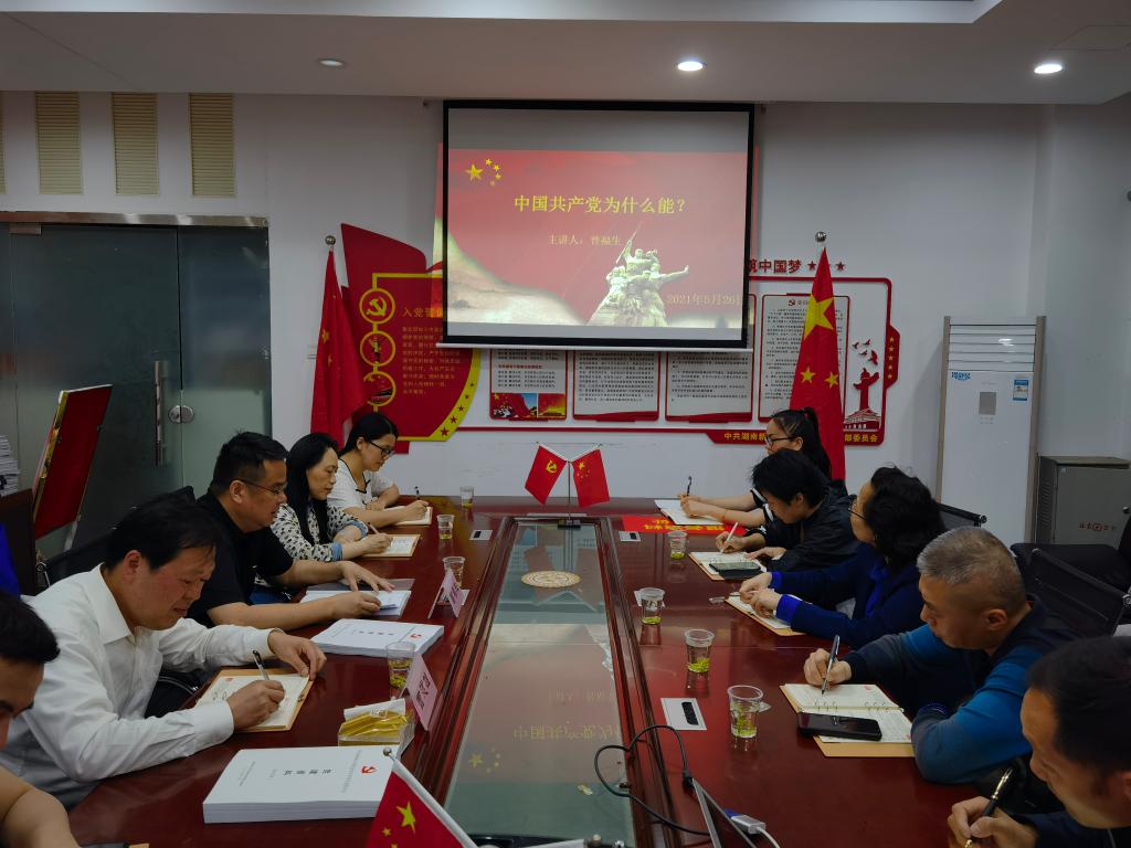 共建仪式结束后,副校长曾福生为共建支部全体党员做了题为《中国共产党为什么“能”》的党史学习教育辅导报告。曾福生从有科学理论引领、远大理想追求、严明纪律规矩、坚实群众基础、自我革命精神等五个方面详细阐述了中国共产党从小到大、由弱到强的历程,走过百年风雨却长盛不衰、枝繁叶茂的根源。