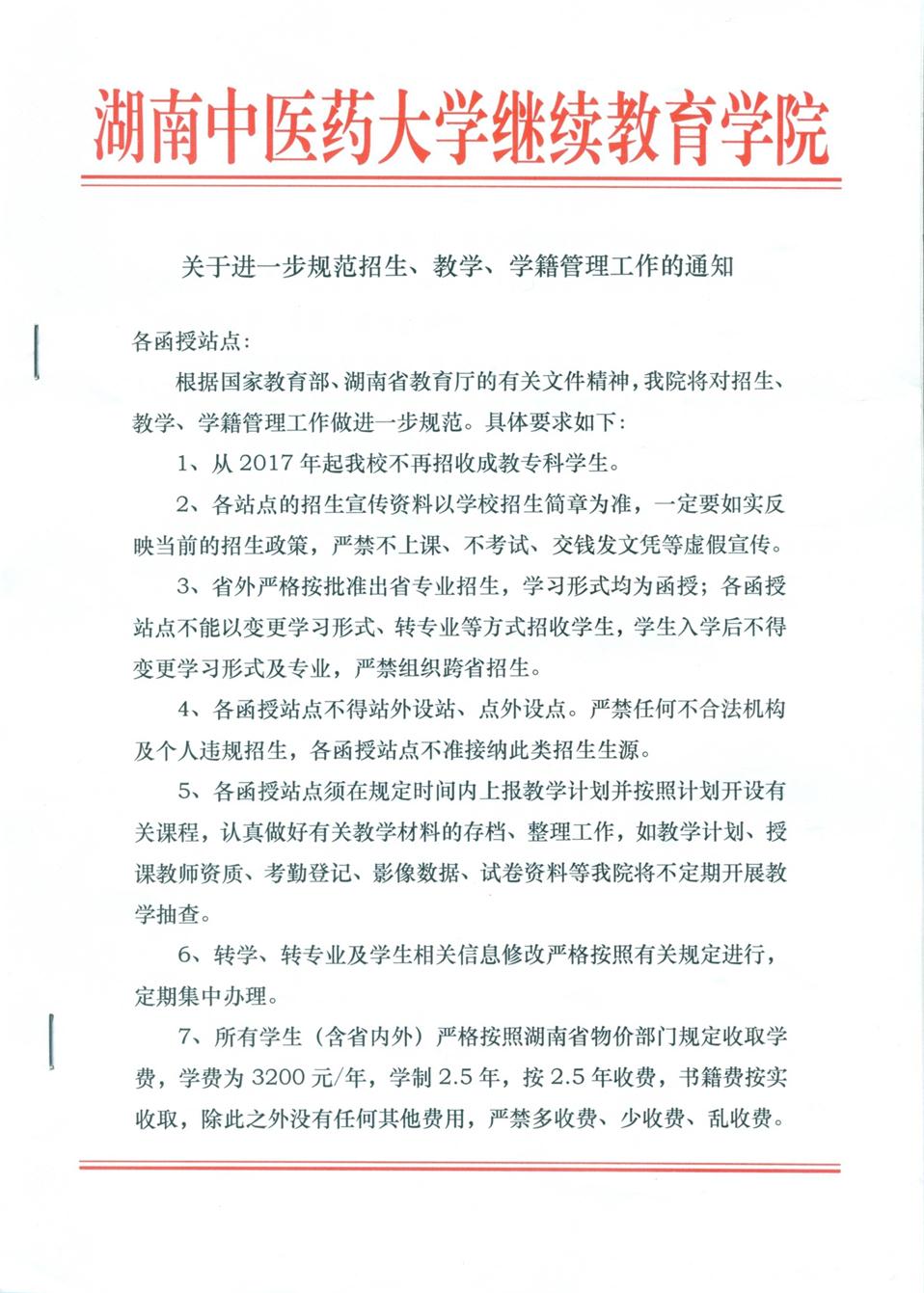 关于进一步规范招生、教学、学籍管理工作的通知