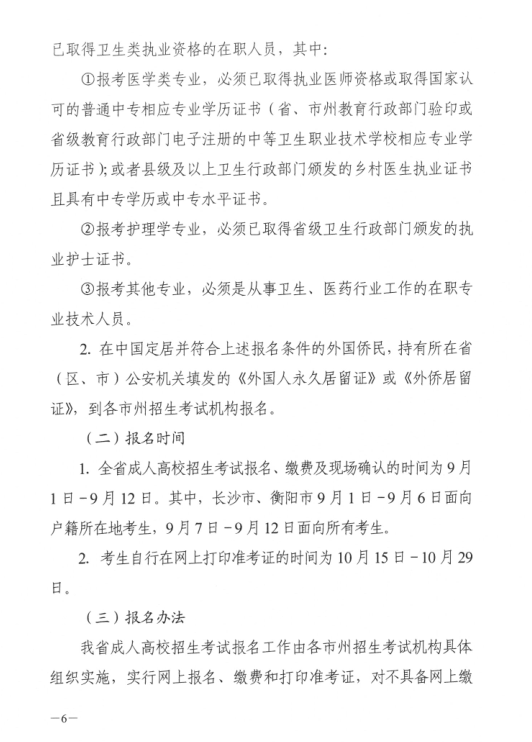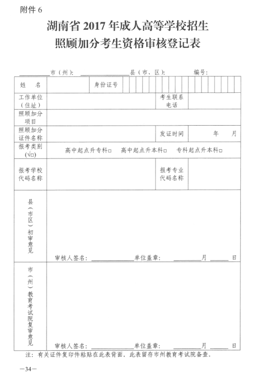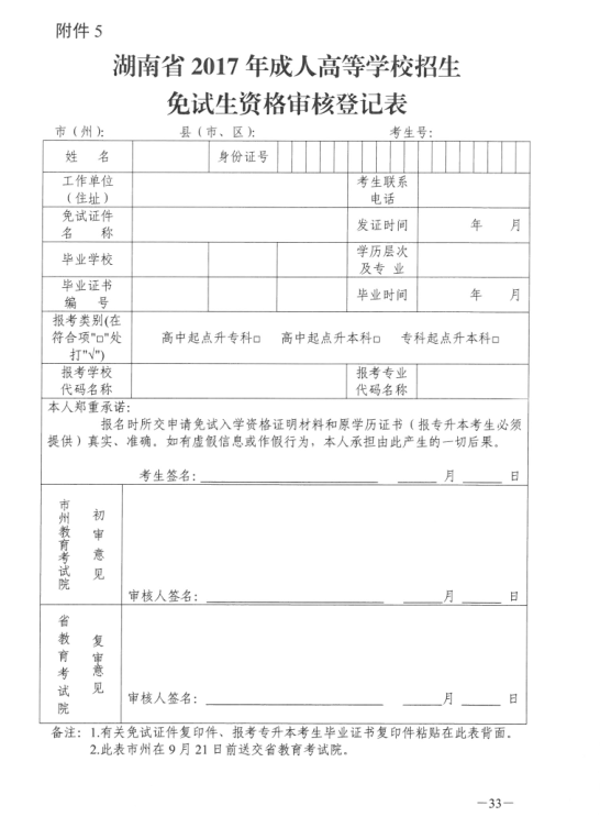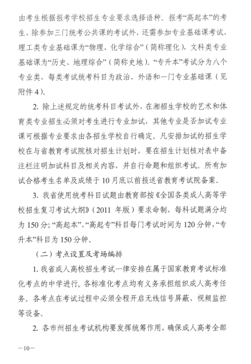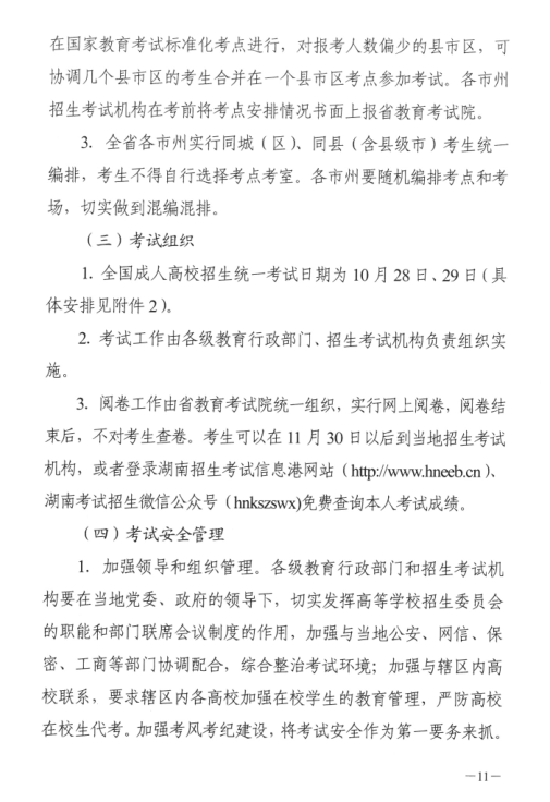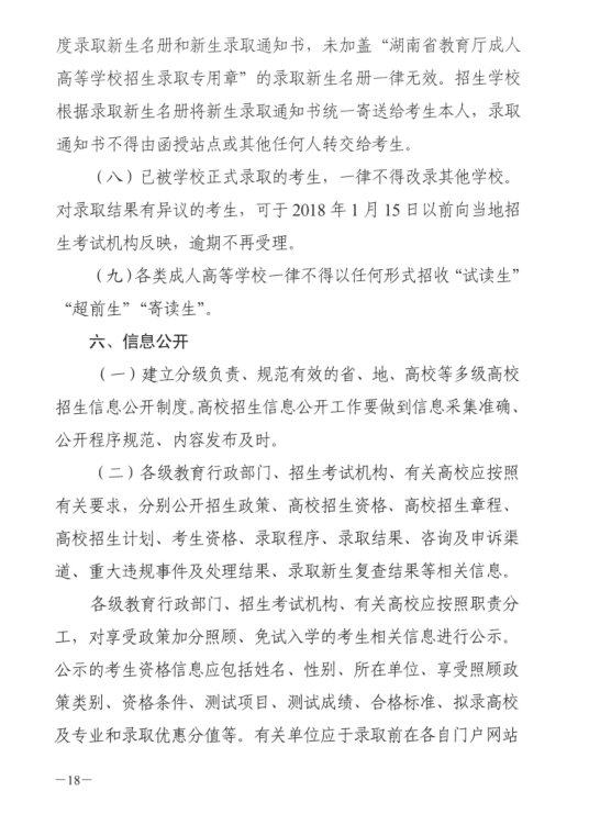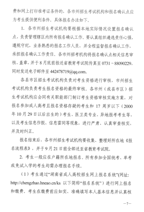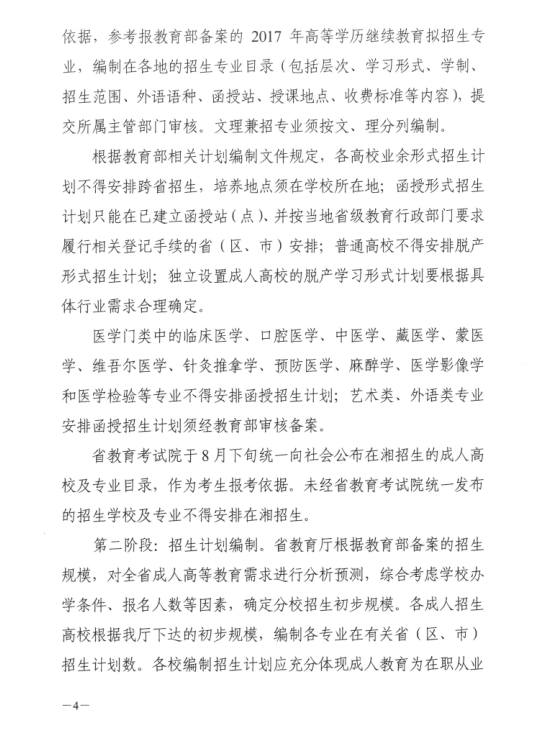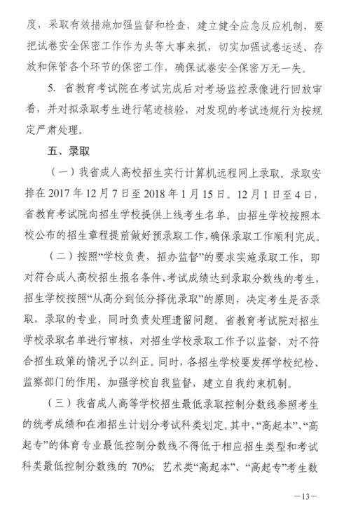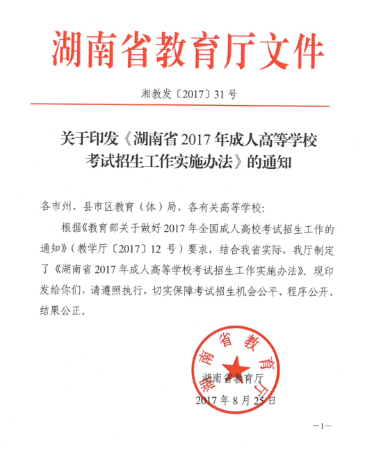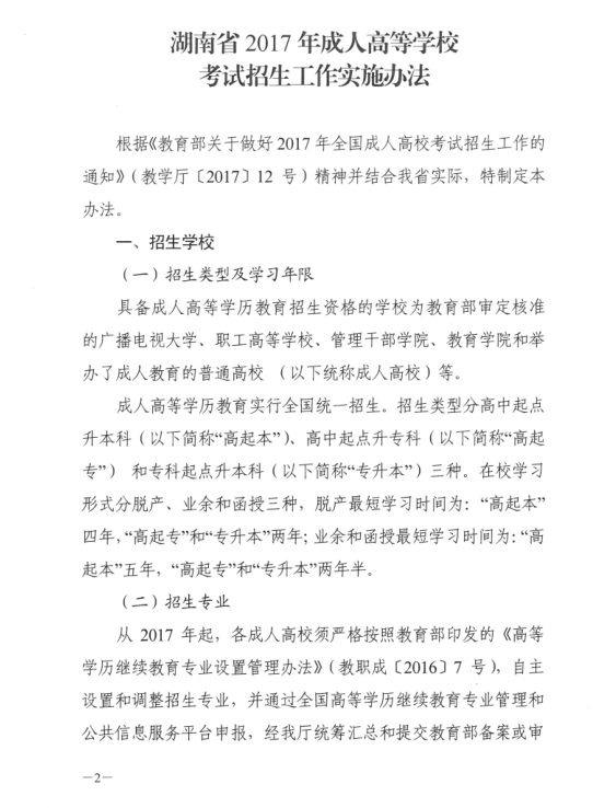 湖南省2017年成人高等学校考试招生工作实施办法