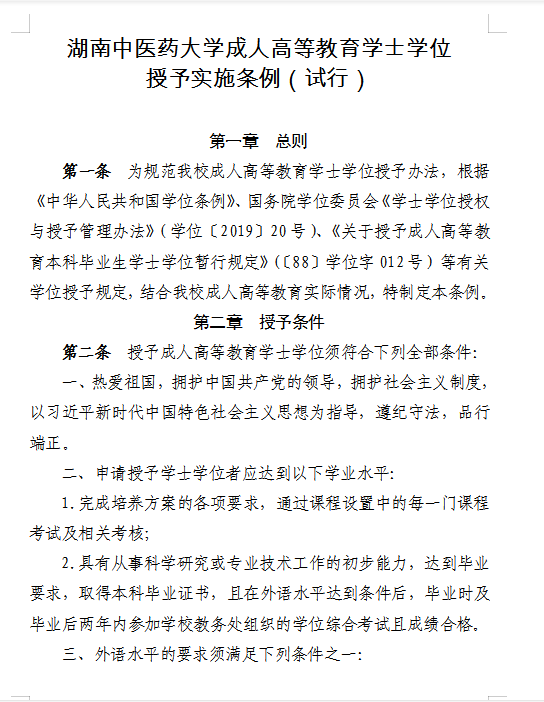 关于印发《雷火电竞官方网站成人高等教育学士学位授予实施条例(试行)》的通知