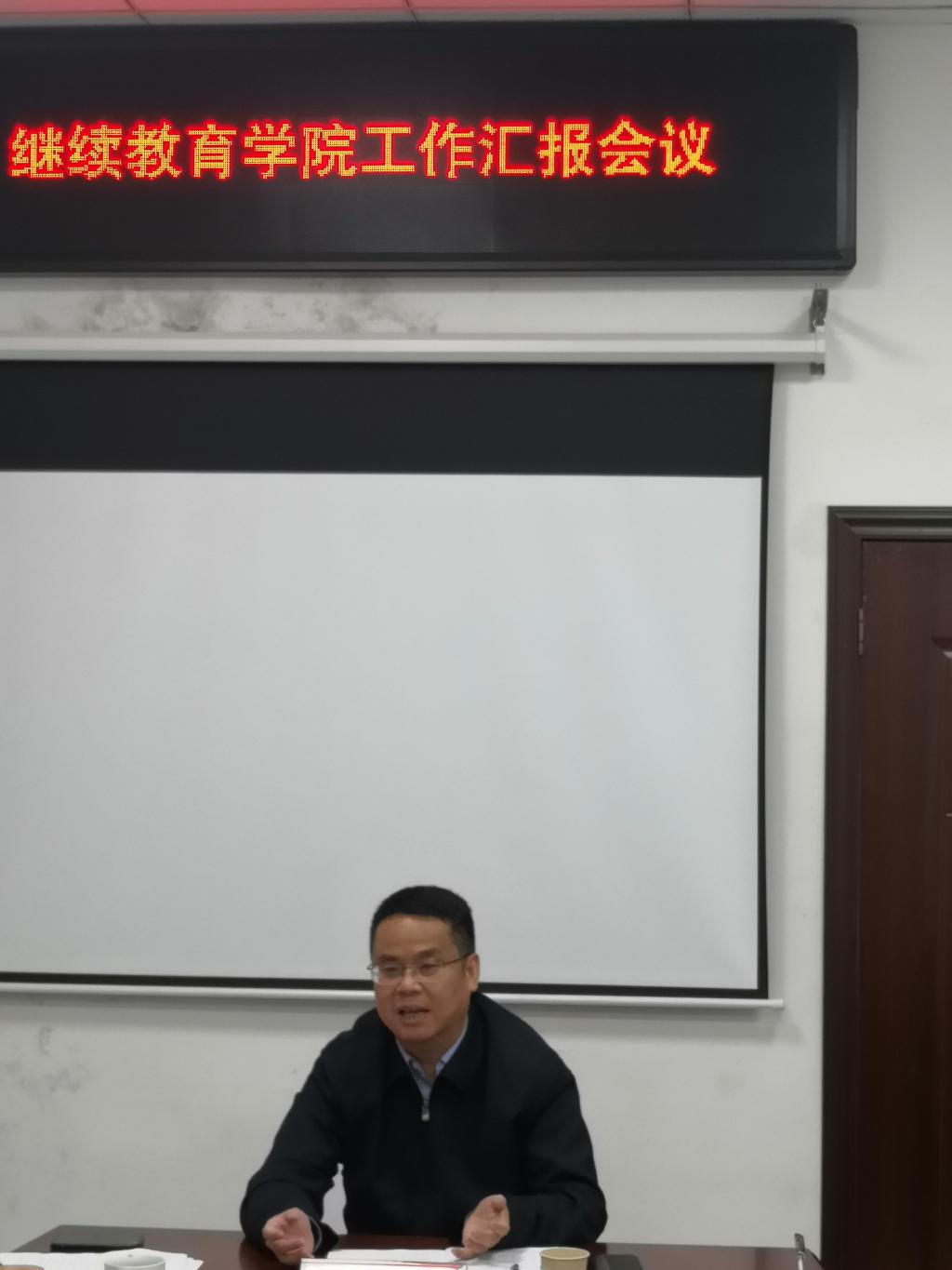 曾福生副校长对学校继续教育工作取得的成绩表示充分肯定,认为学院教育教学工作扎实有效,为学校和社会在培养人才、充实资源和创造价值上做出了贡献。针对学院建设与发展,他提出四点要求。一是学院要尽快修改、完善相关工作制度,积极稳妥推进制度创新与制度建设。二是全体教职工应各司其职、各负其责,严格管理,合力推进良好的工作格局。三是学院应树立和强化群众观念,不断提高服务能力与水平。四是学院应加强对函授站点的管理,确保学历继续教育健康发展。曾福生勉励大家要同心协力、合作共事,共同推动继续教育工作的发展。