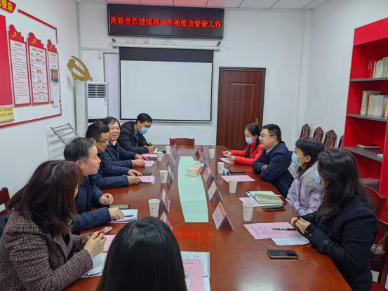 督查组对我校高等学历继续教育在办学定位、站点设置、收费管理、自考助学、教学管理、专项整治履职尽责等方面情况进行全面、认真、详细的问询、查阅、检查。