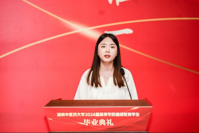 2022级护理专业的学员杨禧珺作为毕业生代表发言,对在雷火电竞官方网站圆梦表示感谢并分享了自己学习及成长心路历程。