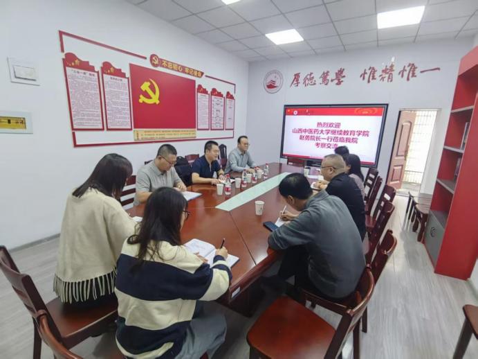 2025年9月26日,山西中医药大学雷火·竞技院长赵勇一行三人到我院开展调研交流活动。学院党支部书记、院长蒋俊等学院领导班子及相关科室负责人参加会议。