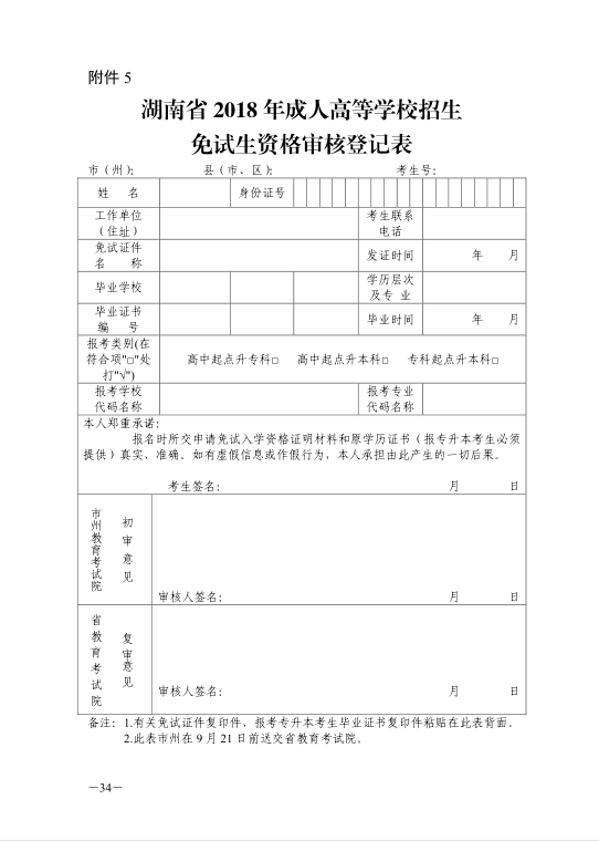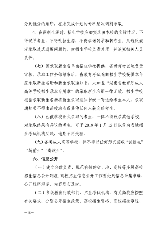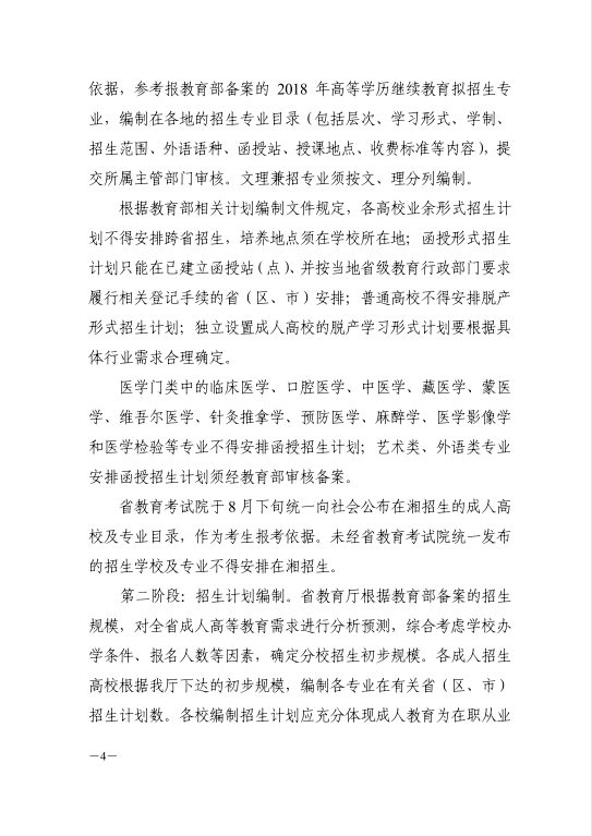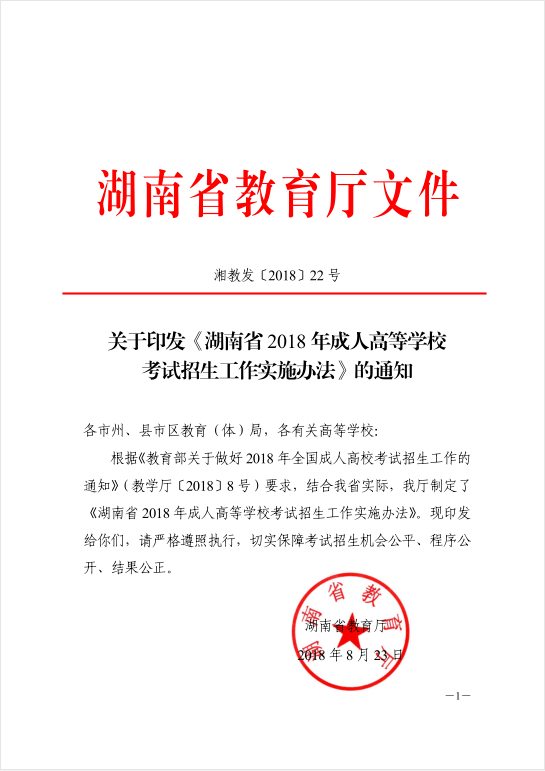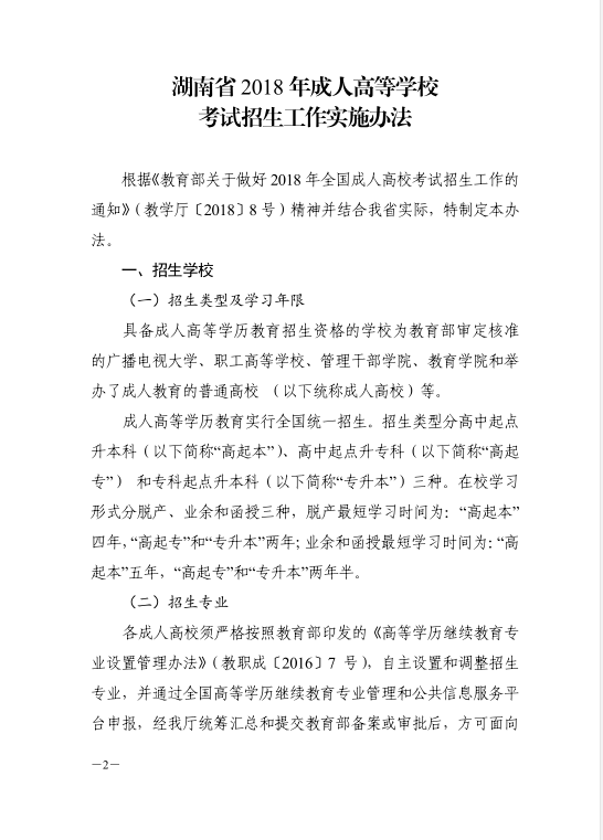 湖南省2018年成人高校招生实施办法(湘教发〔2018〕22号)